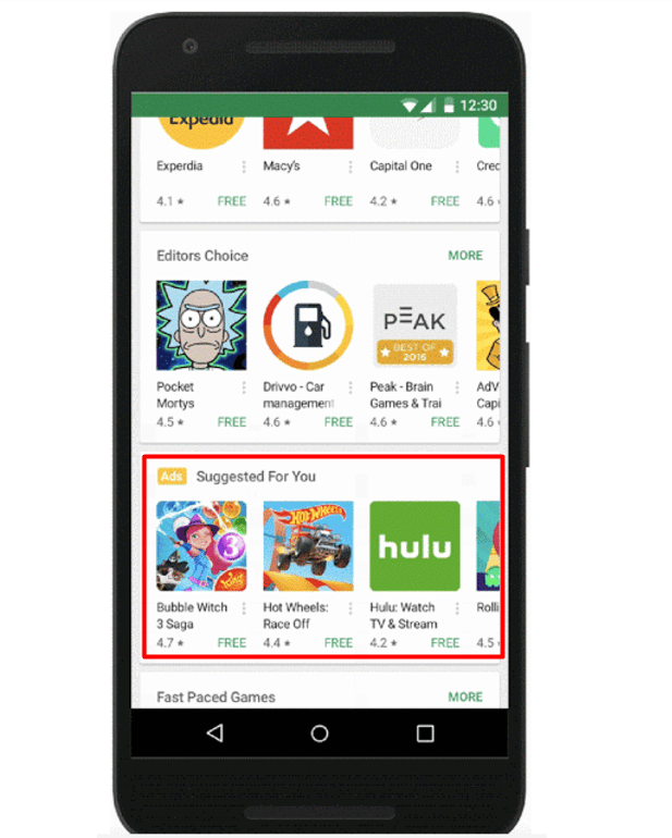 - No es necesario que cuente con un diseño estricto de anuncios individuales, es decir, que el sistema de Google ahorra tiempo para los promotores de apps, debido a que sólo se requiere agregar un texto general referente a la aplicación para poder generar publicidad.